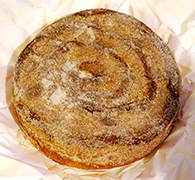 『BRIOCHE ALSACIENNE(アルザスのブリオッシュ)』;渦巻きのブリオッシュの中に、アーモンドのパテが入った、アルザス地方の菓子パン。大きさも様々ですが、ずっしり大きな、取り分けるものが多く見られます。