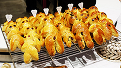 アルザス地方では日曜日の朝に焼くパンで、アルザス産の白ワインによく合うそうです。お店によって、大きさも、中身の生地やフルーツも様々。アルザスでは、どこでも見かけます。大きさは、一般的なクグロフ型のサイズと、ミニサイズなどもあり。