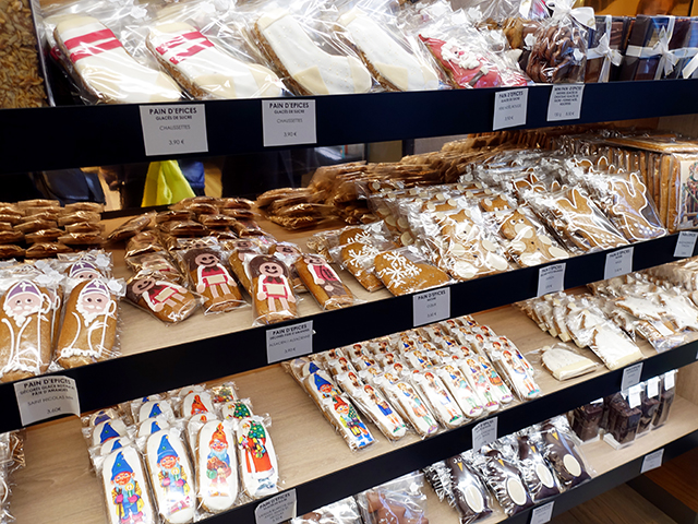 文字通り、“香辛料(スパイス)のパン”ですが、人形や、クリスマスをモチーフにしたクッキータイプのものと、ケーキのようなパンのような、切り分けて食べるタイプのものがあります。どちらも、『pain d’épices』(パンデピス)です。一般的なお菓子ですが、クリスマスの時季になると、よく見かけます。