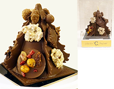樅の木の立体チョコに、マンディアンやロッシェ、ナッツなどのいろいろなChocolatsをデコレーションした、クリスマスのアイテム。 -
