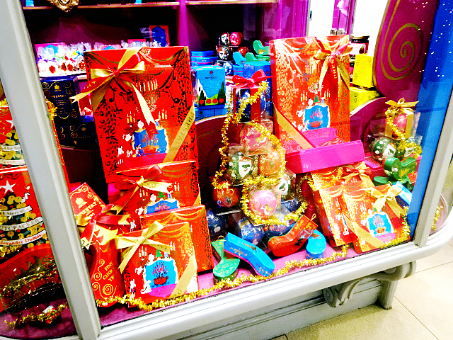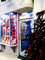 12月、クリスマスムード最中のロンドン。賑わう街に、淑やかにクリスマスを彩る、「Princess Arcade(プリンセスアーケード)」の中で、独特の雰囲気で、クリスマスを装う『PRESTAT』(プレスタ)。いつものイメージカラーの“ピンク”と“ブルー”に,クリスマスカラーの“レッド”と“グリーン”が加わりました。デザイナー「キティ・アーデン氏」による、奇抜な独特のカラーデザインのパッケージも、クリスマスのデザインに・・・。大きなギフトから、小さなかわいいパッケージものまで!!