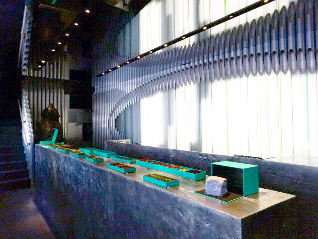 「パトリック・ロジェがマドレーヌ広場にOPENしたお店」といえば、すぐ分かる人も多い、衢では有名なお店で、筒状のアルミニウムに囲まれた近未来的な内装が話題を呼びました。2階にはチョコレートの彫刻作品を展示し、チョコレートとアートを融合した独自の世界を発信させるショップとしています。