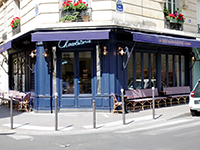 ショップカラーの紺色のひさし。パリらしい雰囲気のお店。