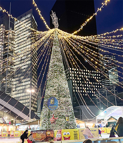 この『La Défense』の中心部で開催される「Marché de Noël」。超高層のビルの中の、クリスマスのイルミネーションは、非常に壮観・・・。Parisの代表的、巨大な「Marché de Noël」は、暗くなるにつれだんだんと人が増え、非常に人気の注目のスポットです。