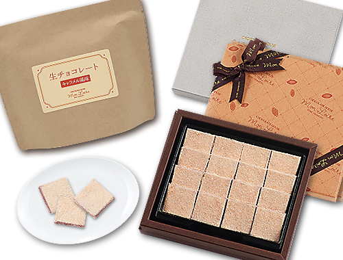 冬(12月~2月頃)の生チョコレートの季節の風味は・・・、『キャラメル風味』です。キャラメルの味わいを詰め込んだミルクチョコベースの生チョコレート。ほろ苦い、キャラメルパウダーで仕上げました。是非、お試しください。